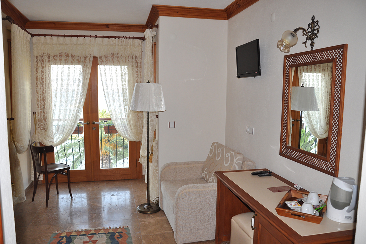 Deniz manzaralı verandamız ve küçük bahçemizde zengin kahvaltınızı, a la carte öğle ve akşam yemeklerinizi keyif ve afiyetle yiyebilirsiniz.Mutfağımız sizlere seçkin menüsüyle lezzetini sunacaktır. Odalarımızda ; iç ve dış hat telefon ,LCD televizyon(tüm uydu kanalları),klima,tavan vantilatörü,minibar,Kettle - Hoşgeldiniz tepsisi ,güvenlik kasası,terlik,banyoda saç kurutma makinesi standart olarak bulunmaktadır…Banyolardaki şampuan ,sabun gibi tüm kişisel temizlik ürünleri organik ve markalıdır.Güvenle kullanınız... Minibar ücretli olup, güvenlik kasası ve tüm otel alanımızda wi-fi ücretsizdir ve kişiye özel şifrelidir.